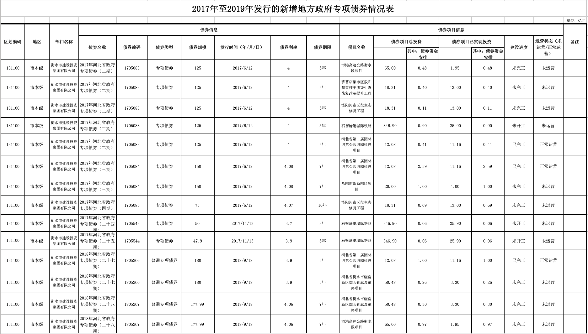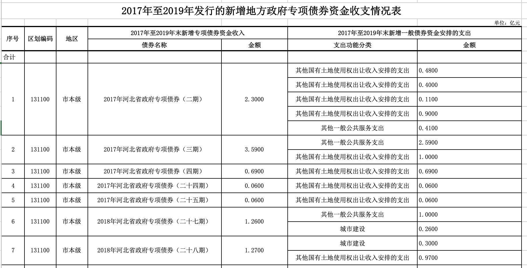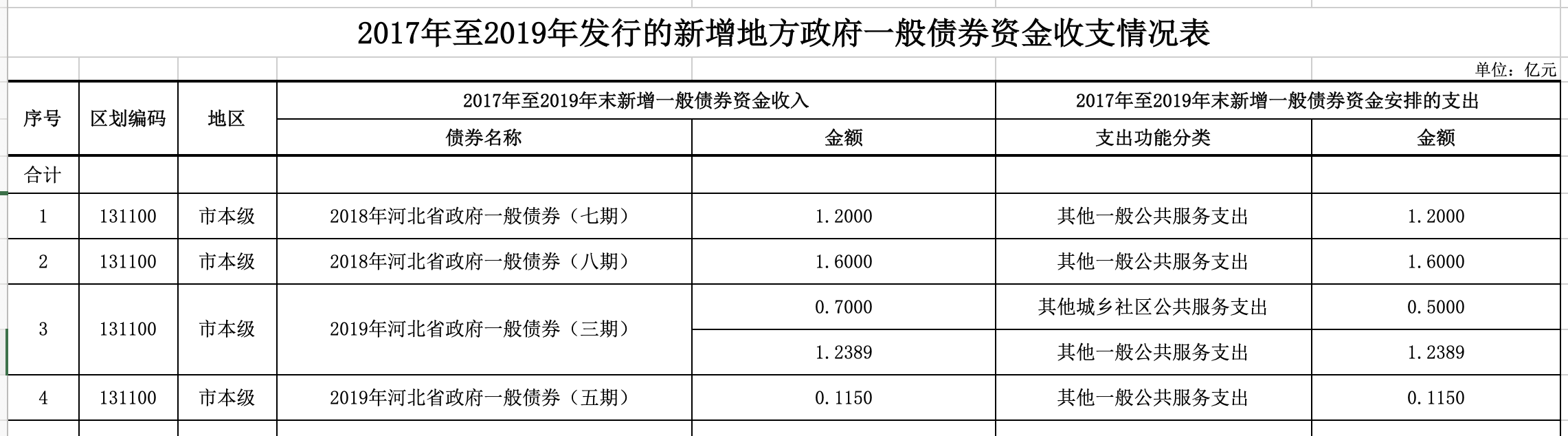 2017年至2019年發行的新增地方政府債券情況信息公開